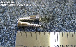 Control Plate Screws Set of 2. Nickel plated steel. 5/8" #5 Partial thread slot head screws used to mount the control plate on Blackguard Telecaster. Like a pickguard screw only bigger.