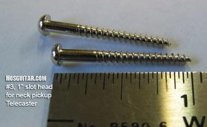 Neck Pickup screws #3 1" Nickel plated steel slot head screws. Used for neck Pickup on Blackguard Tele's.