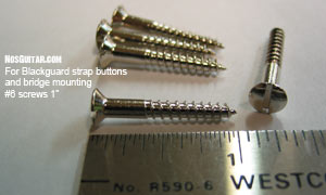Blackguard Strap Button Screws 1" #6 slot head screws used to mount both the bridge and the strap buttons. Sold in sets of 2 (two).