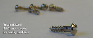 Tuner Screws Set of 7. #3 3/8" Nickel plated steel slot head screws. Used to mount tuners on Blackguard Tele's. Impossible to find. (All the other ones out there are the too long Gotohs, plated brass or full thread stainless). These are the real item. Nickel plated steel.