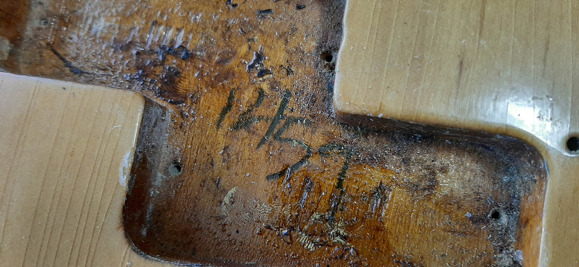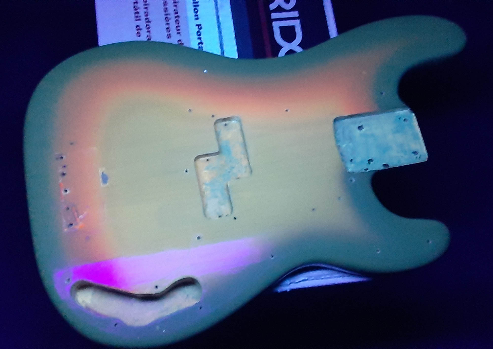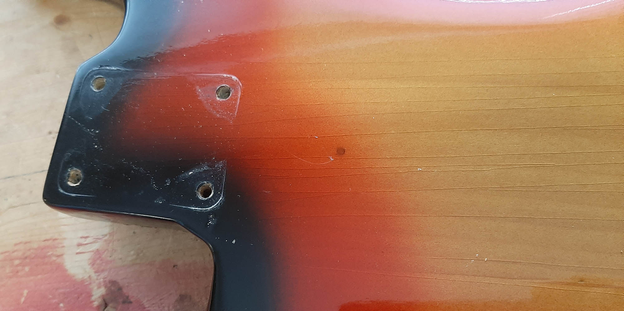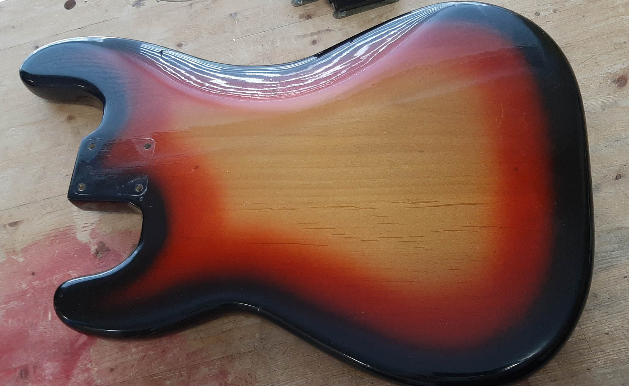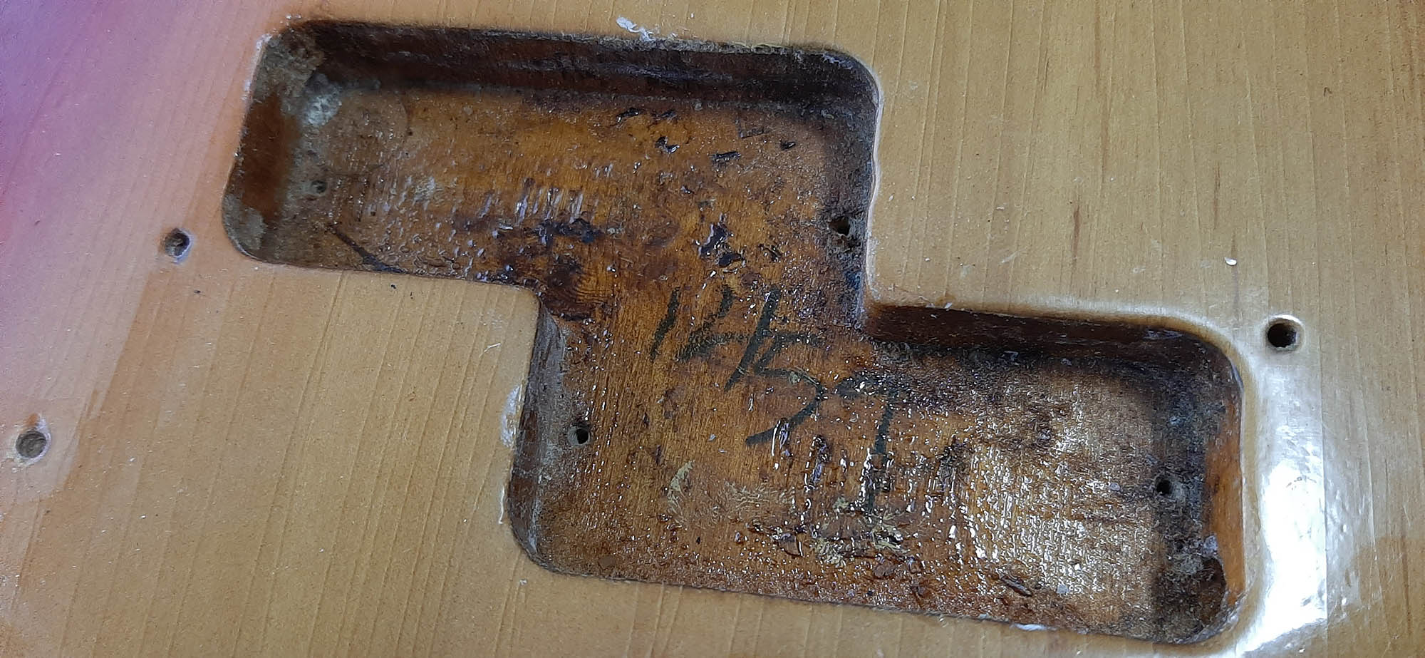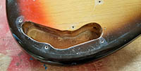 This body is an older refinish. Authentic 1959 with date and old finish in cavities.